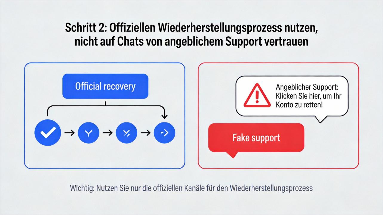 Schritt 2: Offiziellen Wiederherstellungsprozess nutzen, nicht auf Chats von angeblichem Support vertrauen